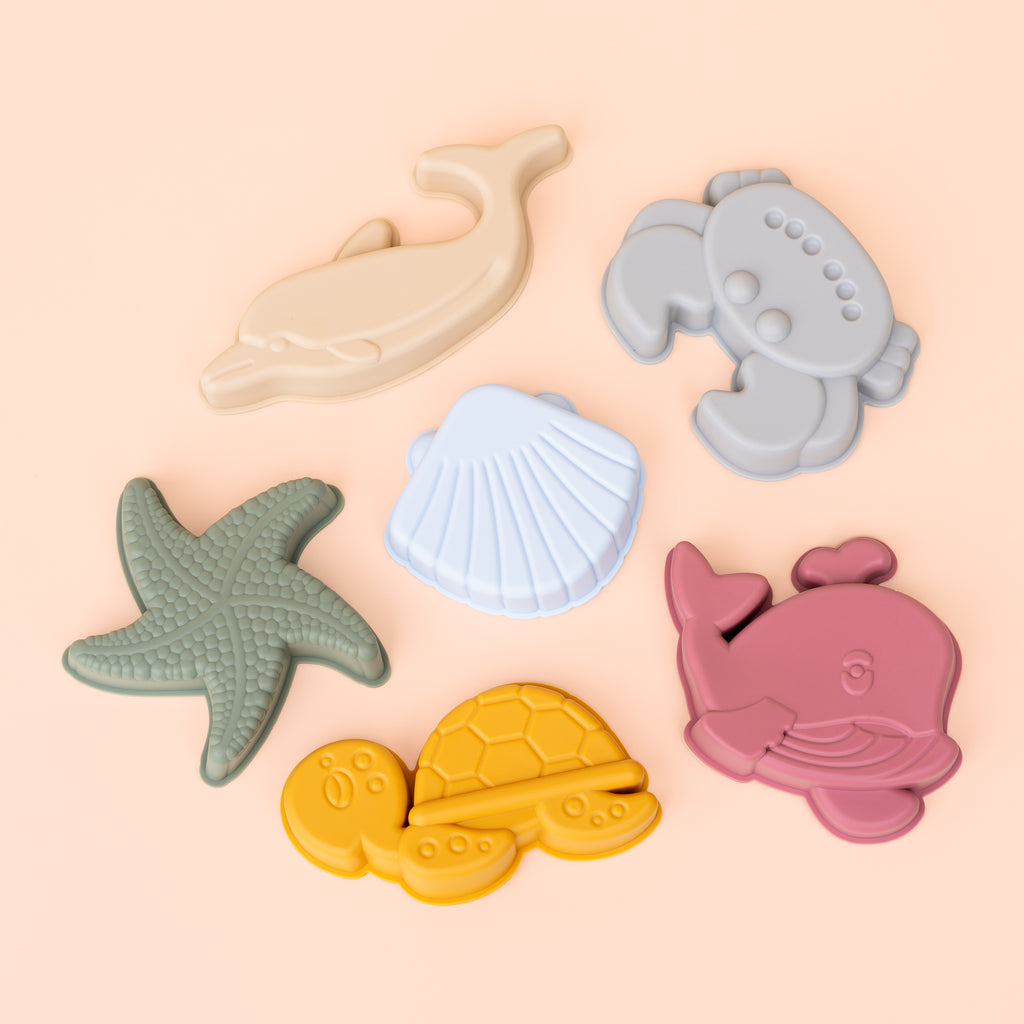 Each piece is made from high quality silicon, which feels amazing to touch! Our toddler Muli Beach Bucket is durable and easy to clean. Watch as they enjoy creating sandcastles, building sea creatures, and developing their imaginations with this lovely beach set! The spade is made from a harder silicon for extra scoop power!