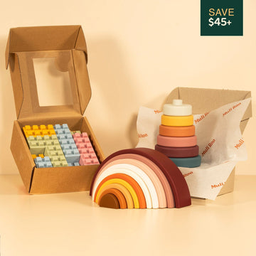 Discover over 1000 different stacking combinations with the Rainbow Roo (Classic). From simple towers to complex structures, kids will never fail to amaze us with their imaginations with this toy. Made from high-quality, food-grade silicone, this stacker ensures durability for years of play. The muted tones and organic shapes offer a nice aesthetic that complements almost any playroom or nursery.